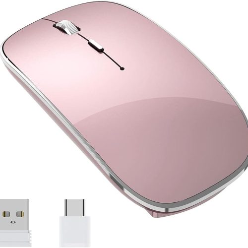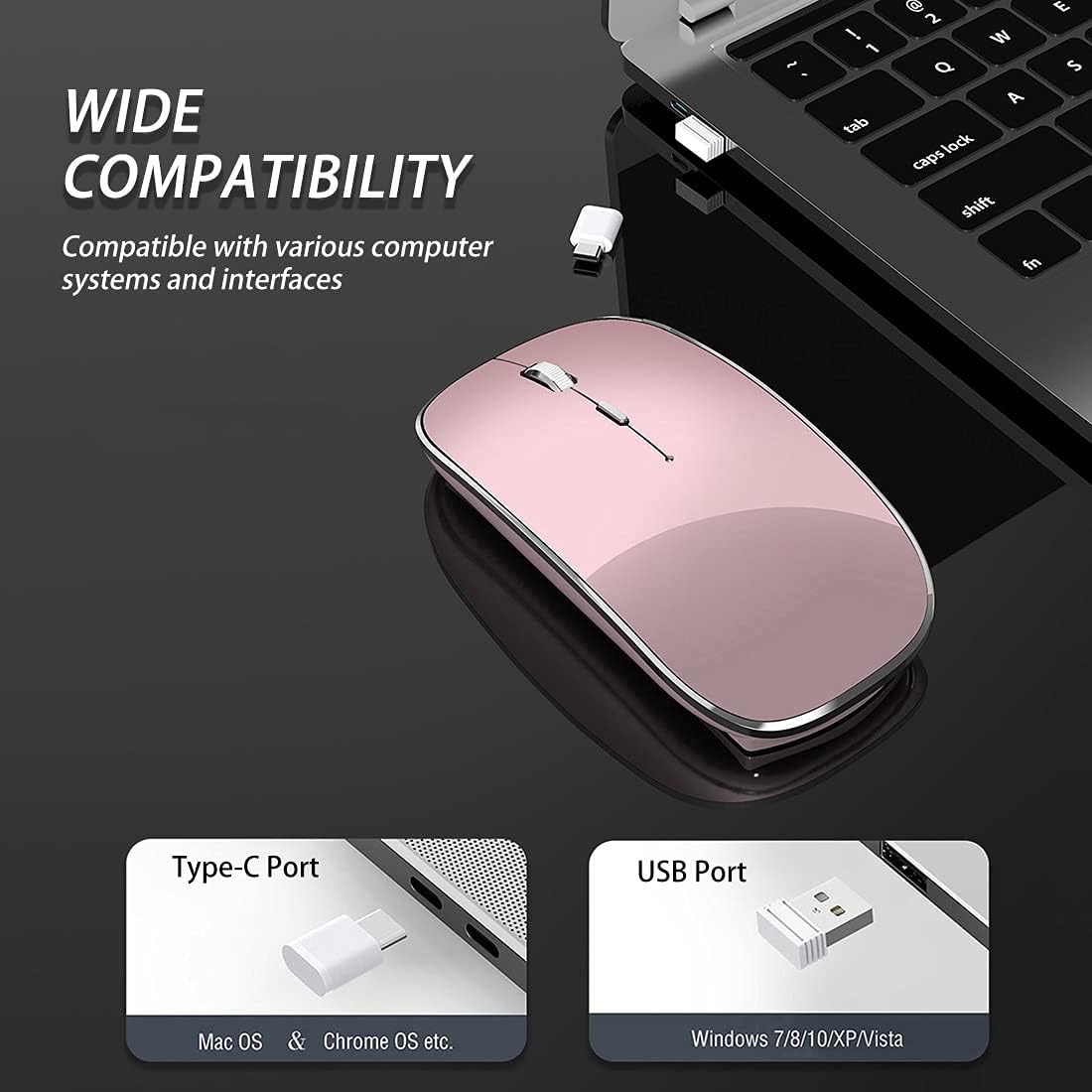 LED Bluetooth Wireless Mouse for MacBook Air Mac Pro Laptop iPad –Rechargeable Silent Light-Up Optical Mouse with Jiggler Dual Mode BT5.2 & USB-A/USB-C for Students, Kids, Girls, Boys – Rose Gold